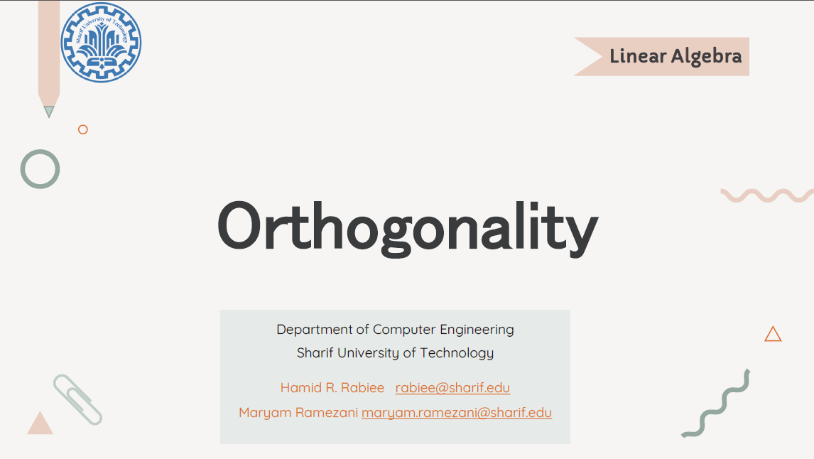 tl;dr: Orthogonality, Gram–Schmidt Algorithm, Orthogonal Complements, Projection