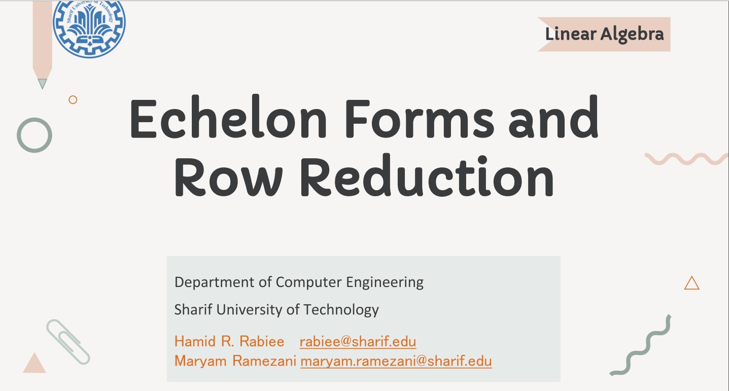 tl;dr: Vector Operation, Matrix Multiplication, Elementary Row Operations, Elementary Matrices