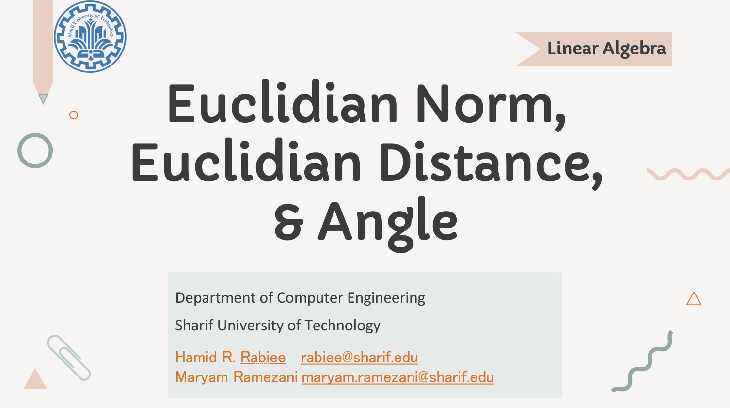 tl;dr: Inequalities, Euclidean Norm, Euclidean Metric (Distance), & Angle