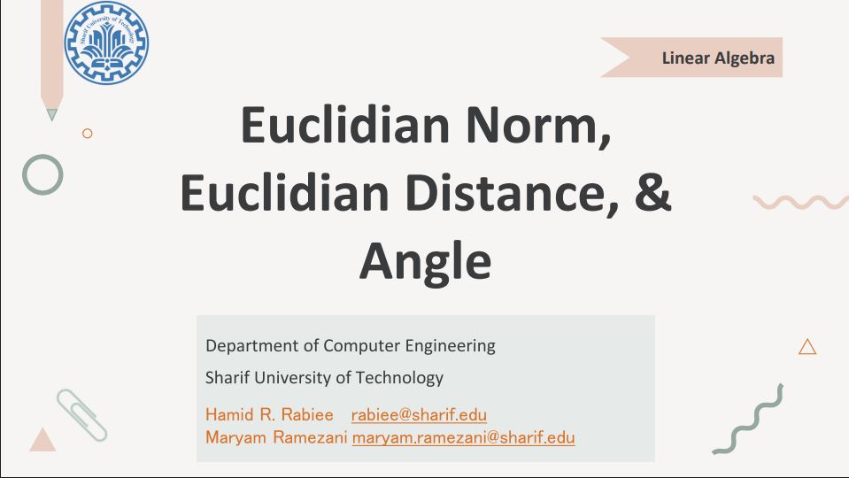 tl;dr: Inequalities, Euclidean Norm, Euclidean Metric (Distance), & Angle